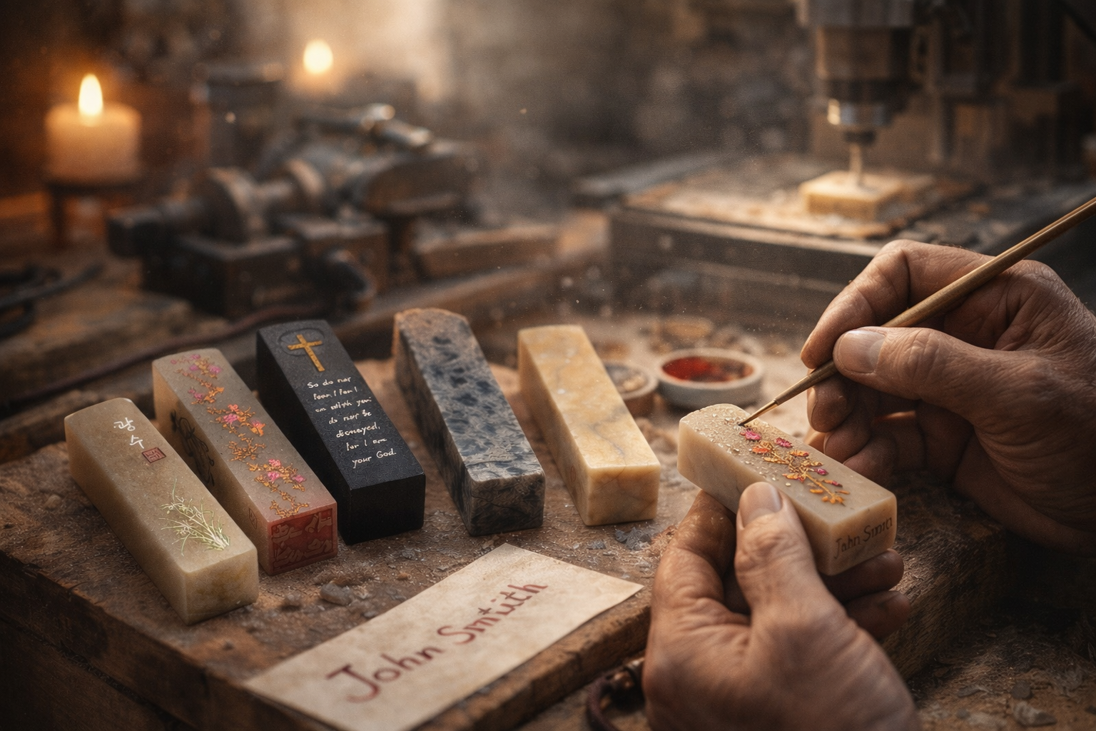From raw stone to personal legacy. Each piece is precision-carved and hand-finished in our studio. Every mark tells a story.